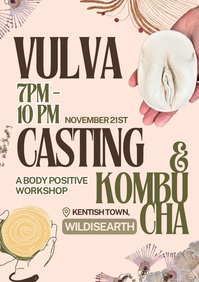 Join us for an evening of fermentation, creativity and connection through a grounding and empowering vulva casting workshop — hosted in the nurturing, earthy space of Wild IS Earth, a kombucha microbrewery rooted in nature and slow, nourishing processes.